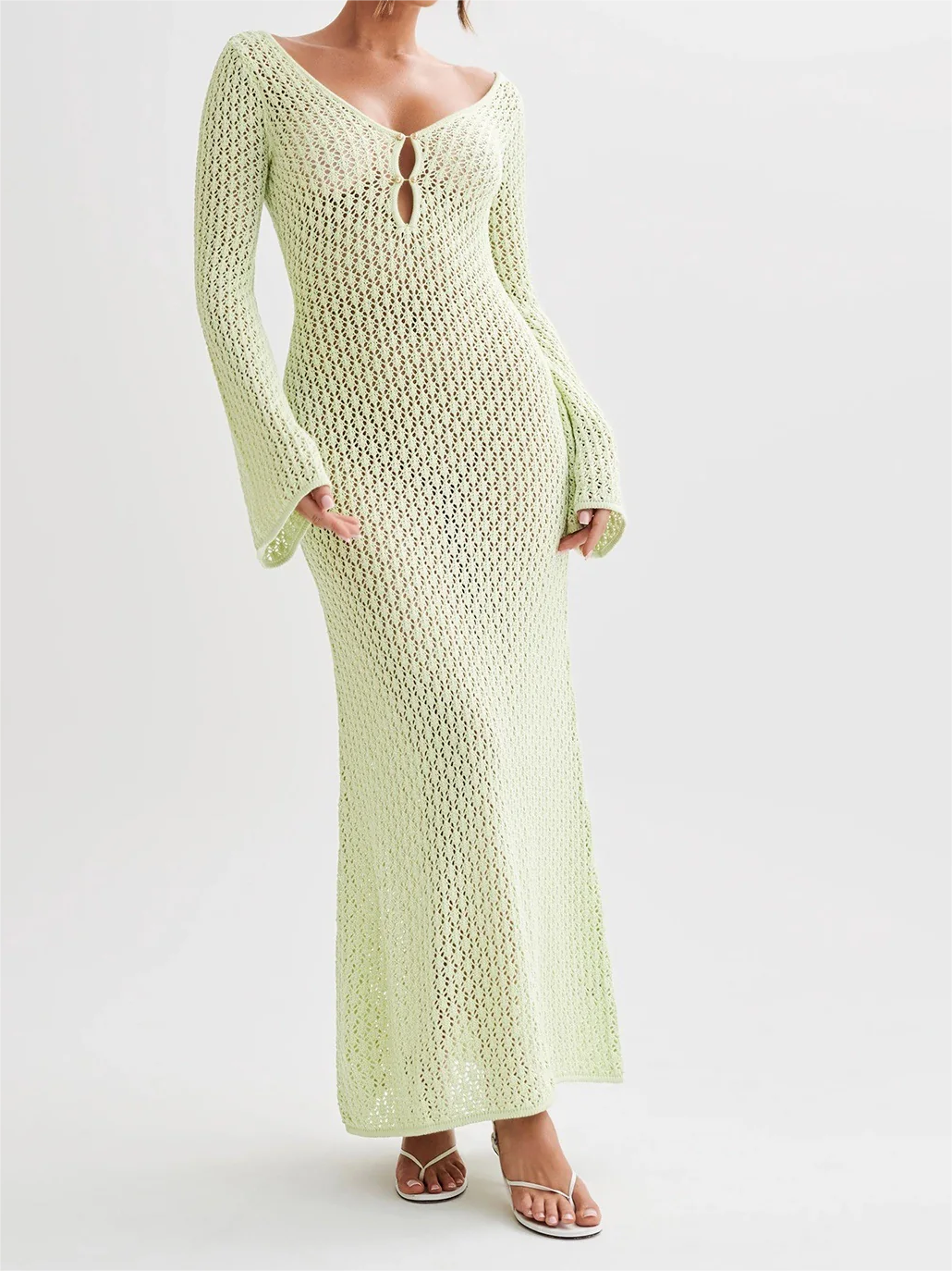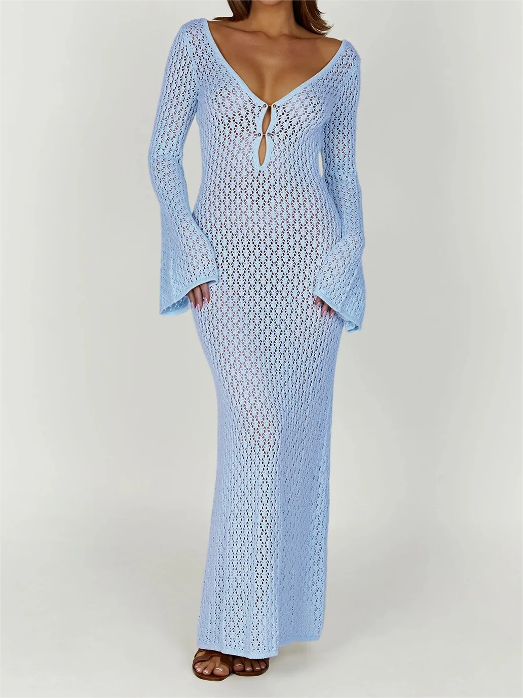 Cover Up Long Sleeve Open Back Long Dress 52973505