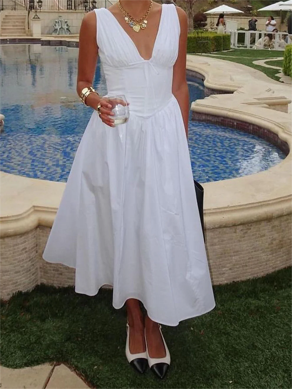 Plain Sleeveless Midi Dress 52973830